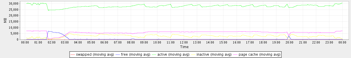 avg(swapped) = 0.25 avg(free) = 542.82 avg(active) = 27904.55 avg(inactive) = 2895.40 avg(page cache) = 5906.63