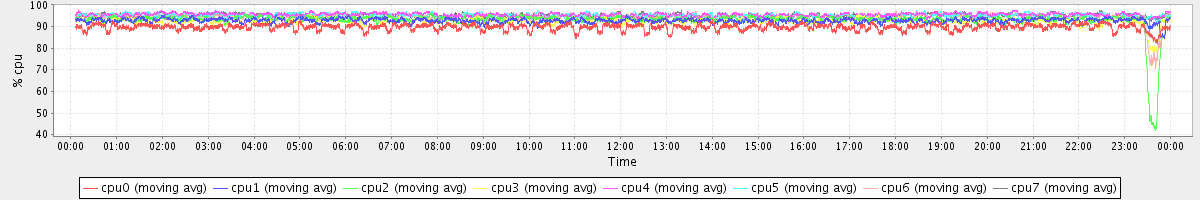 avg(cpu0) = 89.68 avg(cpu1) = 92.76 avg(cpu2) = 92.93 avg(cpu3) = 92.57 avg(cpu4) = 95.43 avg(cpu5) = 95.21 avg(cpu6) = 94.52 avg(cpu7) = 95.18