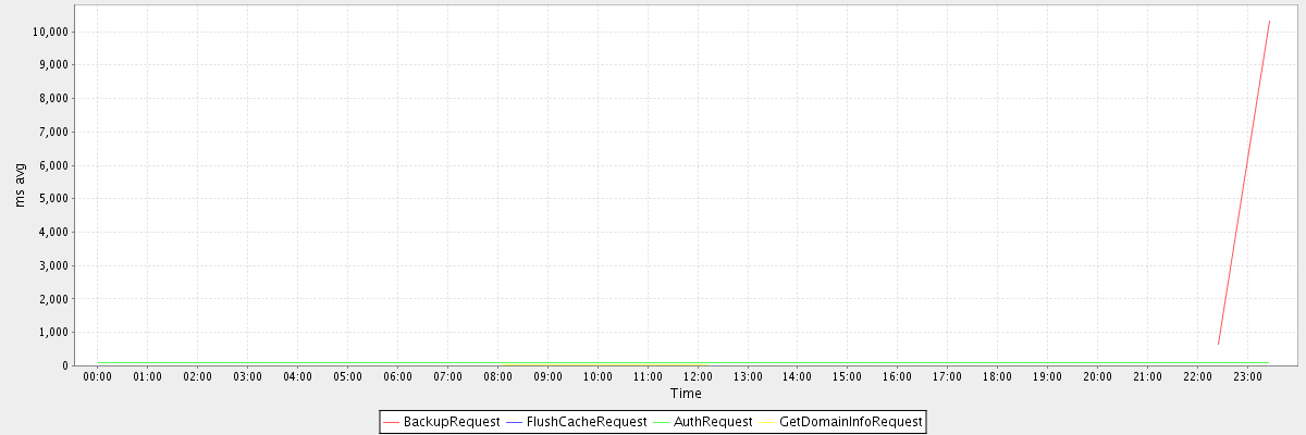 avg(BackupRequest) = 5476.00 avg(FlushCacheRequest) = 50.00 avg(AuthRequest) = 87.00 avg(GetDomainInfoRequest) = 8.80