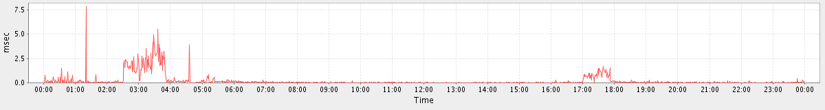 avg(DeleteAccountRequest) = 23284.00 avg(BackupQueryRequest) = 517.20 avg(BrowseRequest) = 440.50 avg(CheckRecurConflictsRequest) = 363.71 avg(SendInviteReplyRequest) = 373.28 avg(AutoCompleteRequest) = 493.16 avg(ApplyFilterRulesRequest) = 50907.00 avg(FolderActionRequest.empty) = 2103.43 avg(BackupRequest) = 11778.50 avg(GetQuotaUsageRequest) = 1404.00