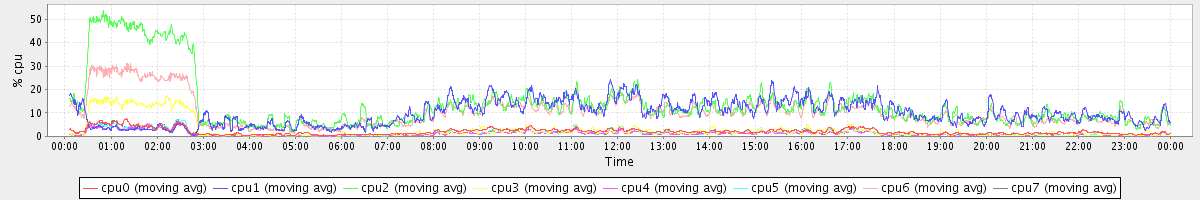 avg(cpu0) = 1.35 avg(cpu1) = 0.27 avg(cpu2) = 0.35 avg(cpu3) = 0.22 avg(cpu4) = 0.19 avg(cpu5) = 0.20 avg(cpu6) = 0.26 avg(cpu7) = 0.20