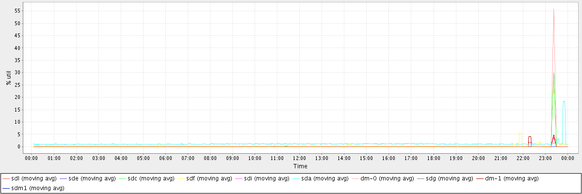 avg(sdl) = 0.03 avg(sde) = 0.00 avg(sdc) = 0.15 avg(sdf) = 0.39 avg(sdi) = 0.00 avg(sda) = 1.13 avg(dm-0) = 0.29 avg(sdg) = 0.16 avg(dm-1) = 0.05 avg(sdm1) = 0.00