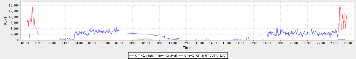avg(dm-1 read) = 359.83 avg(dm-1 write) = 1175.72