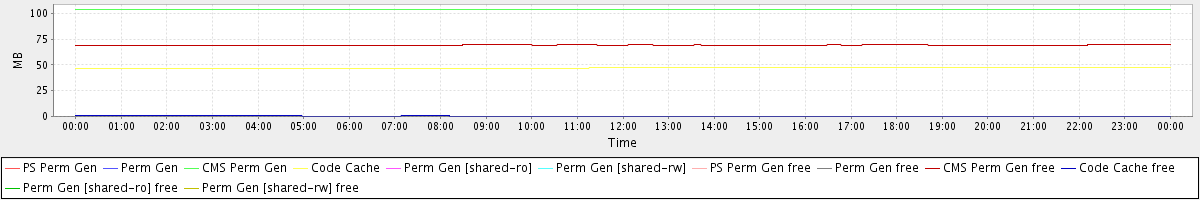 avg(PS Perm Gen) = 0.00 avg(Perm Gen) = 0.00 avg(CMS Perm Gen) = 103.50 avg(Code Cache) = 46.94 avg(Perm Gen [shared-ro]) = 0.00 avg(Perm Gen [shared-rw]) = 0.00 avg(PS Perm Gen free) = 0.00 avg(Perm Gen free) = 0.00 avg(CMS Perm Gen free) = 69.18 avg(Code Cache free) = 0.42 avg(Perm Gen [shared-ro] free) = 0.00 avg(Perm Gen [shared-rw] free) = 0.00