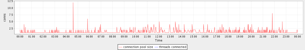 avg(connection pool size) = 0.94 avg(threads connected) = 0.00