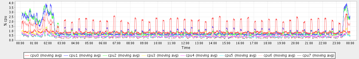 avg(cpu0) = 0.02 avg(cpu1) = 0.05 avg(cpu2) = 0.05 avg(cpu3) = 0.00 avg(cpu4) = 0.00 avg(cpu5) = 0.00 avg(cpu6) = 0.03 avg(cpu7) = 0.00