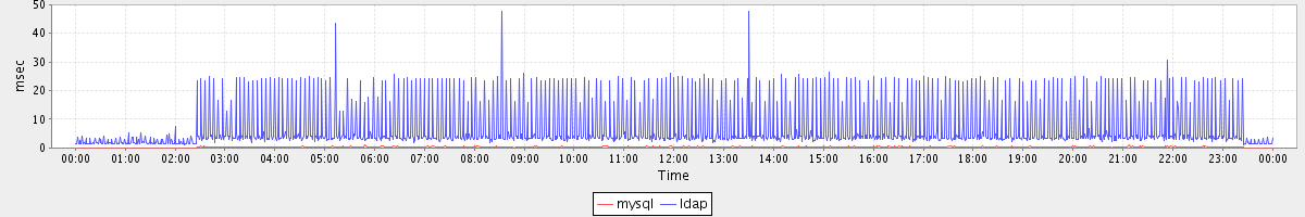 avg(mysql) = 0.20 avg(ldap) = 6.70