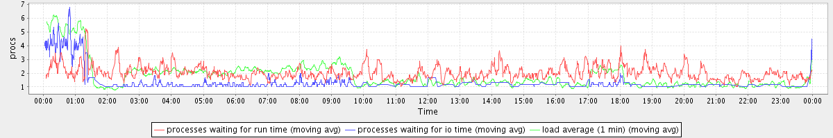 avg(processes waiting for run time) = 1.22 avg(processes waiting for io time) = 0.69 avg(load average (1 min)) = 1.82