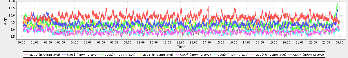 avg(cpu0) = 1.13 avg(cpu1) = 1.01 avg(cpu2) = 0.93 avg(cpu3) = 0.72 avg(cpu4) = 0.51 avg(cpu5) = 0.44 avg(cpu6) = 0.51 avg(cpu7) = 0.36