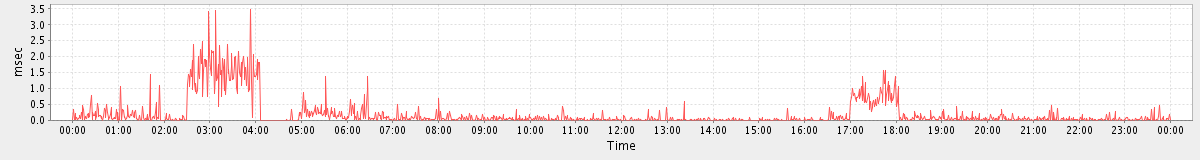 avg(SendMsgRequest) = 239.70 avg(BackupQueryRequest) = 185.50 avg(GetFreeBusyRequest) = 187.90 avg(SendInviteReplyRequest) = 211.91 avg(AutoCompleteRequest) = 529.30 avg(ApplyFilterRulesRequest) = 2120.00 avg(ConvActionRequest.delete) = 436.00 avg(FolderActionRequest.empty) = 1537.65 avg(BackupRequest) = 3866.50 avg(GetQuotaUsageRequest) = 1413.00