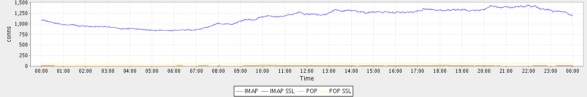 avg(IMAP) = 7.03 avg(IMAP SSL) = 1150.89 avg(POP) = 0.30 avg(POP SSL) = 54.66