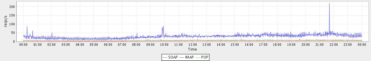 Host zm05.stanford.edu: Mailboxd: Request Rate by Client Protocol