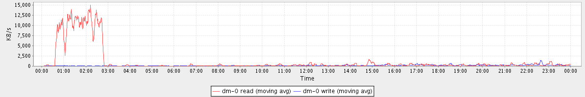 avg(dm-1 read) = 222.52 avg(dm-1 write) = 726.36