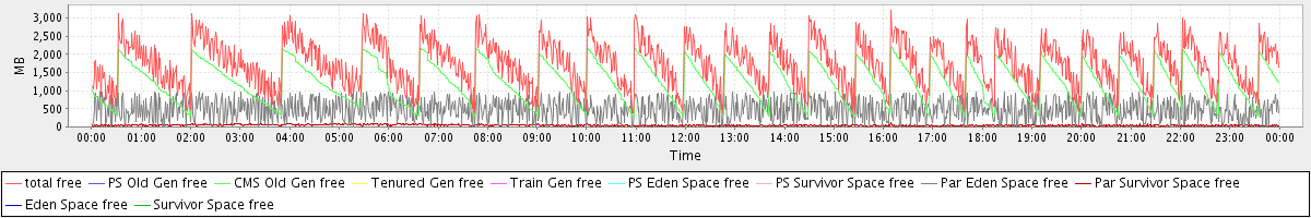 avg(total free) = 1751.87 avg(PS Old Gen free) = 0.00 avg(CMS Old Gen free) = 1223.20 avg(Tenured Gen free) = 0.00 avg(Train Gen free) = 0.00 avg(PS Eden Space free) = 0.00 avg(PS Survivor Space free) = 0.00 avg(Par Eden Space free) = 483.46 avg(Par Survivor Space free) = 45.21 avg(Eden Space free) = 0.00 avg(Survivor Space free) = 0.00