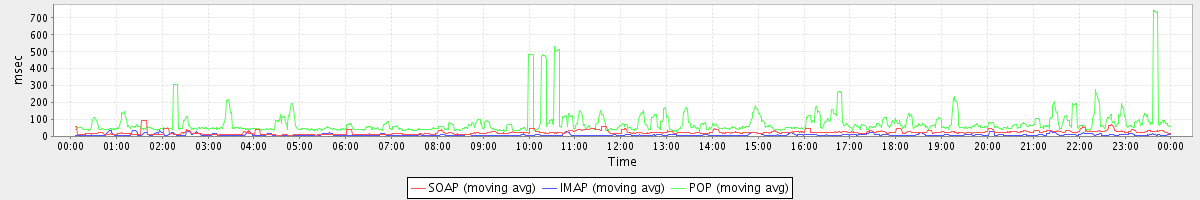 Host zm09.stanford.edu: Mailboxd: Response Time by Client Protocol