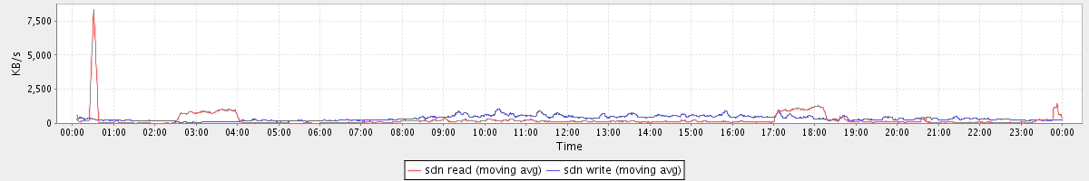 avg(sda2 read) = 0.37 avg(sda2 write) = 7.65
