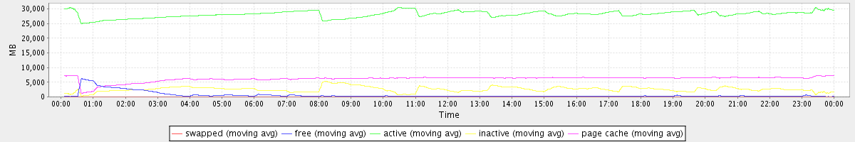 avg(swapped) = 0.25 avg(free) = 601.41 avg(active) = 28242.29 avg(inactive) = 2579.03 avg(page cache) = 6160.55