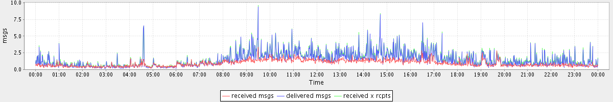 avg(received msgs) = 0.95 avg(delivered msgs) = 1.43 avg(received x rcpts) = 1.55