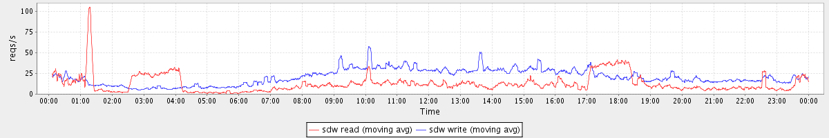 avg(sda read) = 1.44 avg(sda write) = 4.28