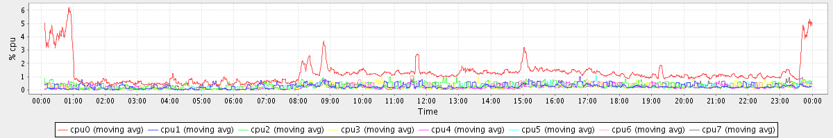 avg(cpu0) = 0.15 avg(cpu1) = 0.03 avg(cpu2) = 0.05 avg(cpu3) = 0.01 avg(cpu4) = 0.00 avg(cpu5) = 0.00 avg(cpu6) = 0.03 avg(cpu7) = 0.00