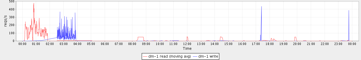 avg(dm-1 read) = 415.28 avg(dm-1 write) = 19.45