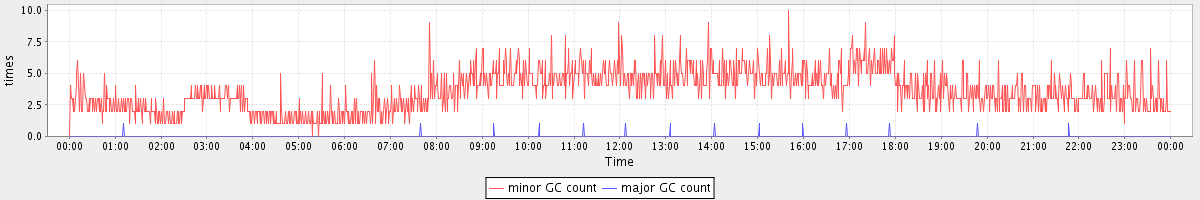 avg(minor GC count) = 3.62 avg(major GC count) = 0.01