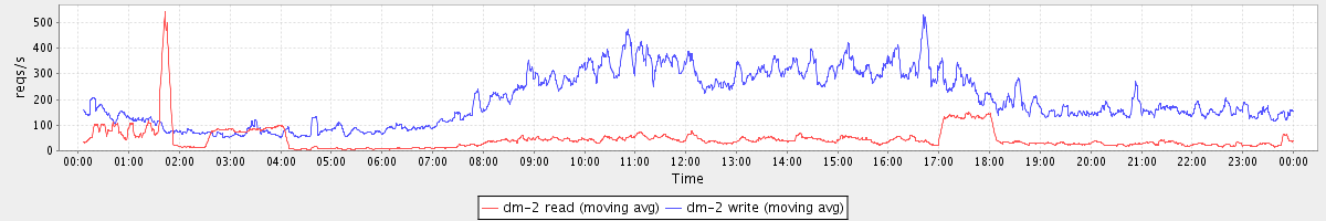 avg(dm-0 read) = 753.20 avg(dm-0 write) = 345.03