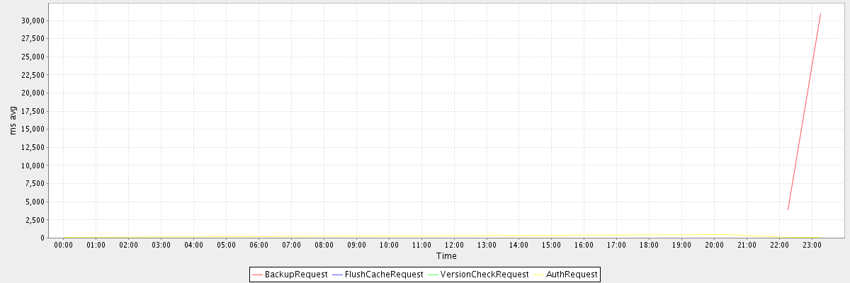avg(BackupRequest) = 17391.50 avg(FlushCacheRequest) = 48.00 avg(VersionCheckRequest) = 615.00 avg(AuthRequest) = 180.75