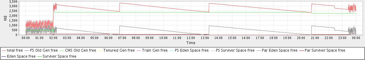 avg(total free) = 2703.16 avg(PS Old Gen free) = 0.00 avg(CMS Old Gen free) = 2177.51 avg(Tenured Gen free) = 0.00 avg(Train Gen free) = 0.00 avg(PS Eden Space free) = 0.00 avg(PS Survivor Space free) = 0.00 avg(Par Eden Space free) = 475.57 avg(Par Survivor Space free) = 50.09 avg(Eden Space free) = 0.00 avg(Survivor Space free) = 0.00
