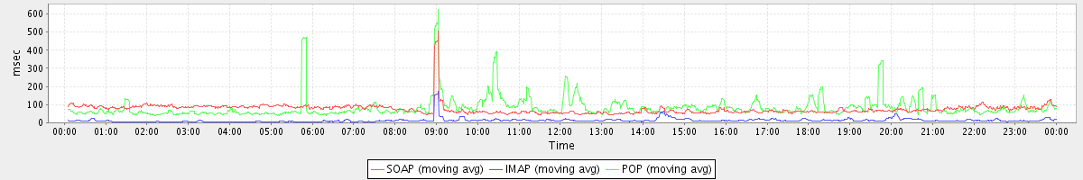 Host zm02.stanford.edu: Mailboxd: Response Time by Client Protocol
