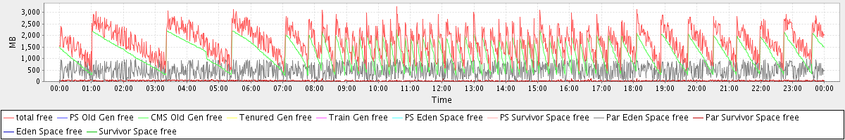 avg(total free) = 1713.61 avg(PS Old Gen free) = 0.00 avg(CMS Old Gen free) = 1199.84 avg(Tenured Gen free) = 0.00 avg(Train Gen free) = 0.00 avg(PS Eden Space free) = 0.00 avg(PS Survivor Space free) = 0.00 avg(Par Eden Space free) = 484.18 avg(Par Survivor Space free) = 29.60 avg(Eden Space free) = 0.00 avg(Survivor Space free) = 0.00