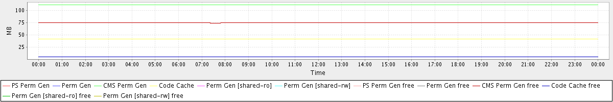 avg(PS Perm Gen) = 0.00 avg(Perm Gen) = 0.00 avg(CMS Perm Gen) = 111.72 avg(Code Cache) = 42.13 avg(Perm Gen [shared-ro]) = 0.00 avg(Perm Gen [shared-rw]) = 0.00 avg(PS Perm Gen free) = 0.00 avg(Perm Gen free) = 0.00 avg(CMS Perm Gen free) = 74.70 avg(Code Cache free) = 5.69 avg(Perm Gen [shared-ro] free) = 0.00 avg(Perm Gen [shared-rw] free) = 0.00