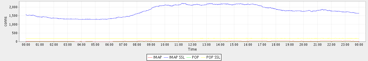 avg(IMAP) = 21.68 avg(IMAP SSL) = 1766.58 avg(POP) = 0.23 avg(POP SSL) = 178.21