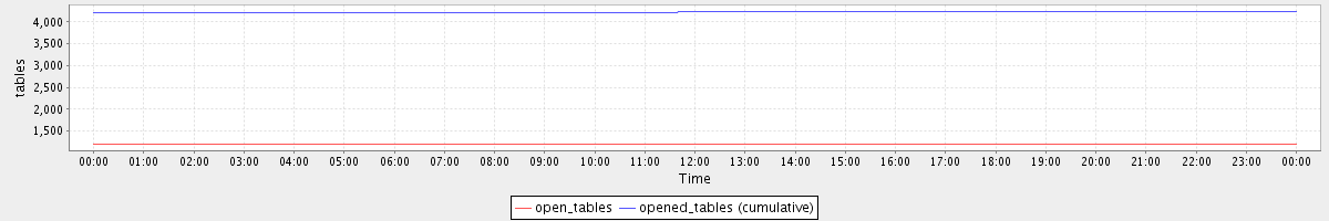 avg(open_tables) = 1199.97 avg(opened_tables (cumulative)) = 4228.70