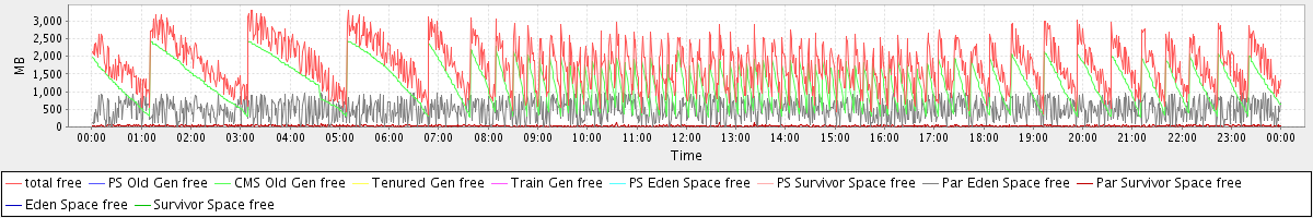avg(total free) = 1759.92 avg(PS Old Gen free) = 0.00 avg(CMS Old Gen free) = 1235.20 avg(Tenured Gen free) = 0.00 avg(Train Gen free) = 0.00 avg(PS Eden Space free) = 0.00 avg(PS Survivor Space free) = 0.00 avg(Par Eden Space free) = 494.52 avg(Par Survivor Space free) = 30.20 avg(Eden Space free) = 0.00 avg(Survivor Space free) = 0.00