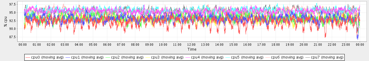 avg(cpu0) = 92.24 avg(cpu1) = 93.15 avg(cpu2) = 93.18 avg(cpu3) = 93.01 avg(cpu4) = 95.32 avg(cpu5) = 95.59 avg(cpu6) = 95.32 avg(cpu7) = 95.32