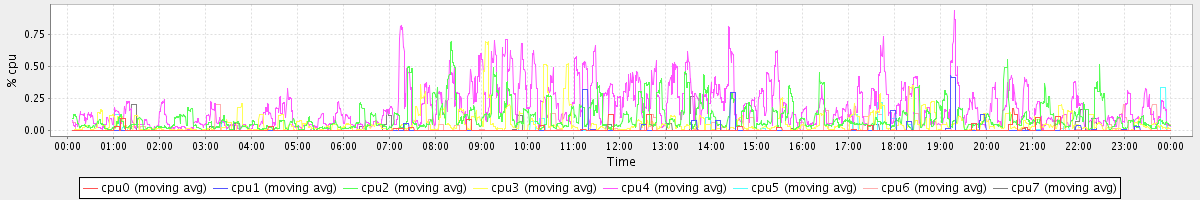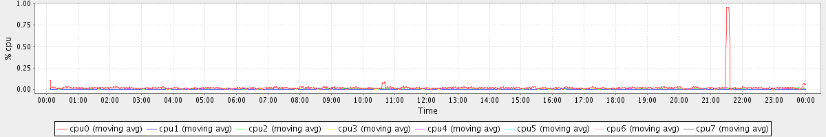 avg(cpu0) = 0.01 avg(cpu1) = 0.01 avg(cpu2) = 0.10 avg(cpu3) = 0.05 avg(cpu4) = 0.18 avg(cpu5) = 0.01 avg(cpu6) = 0.01 avg(cpu7) = 0.01