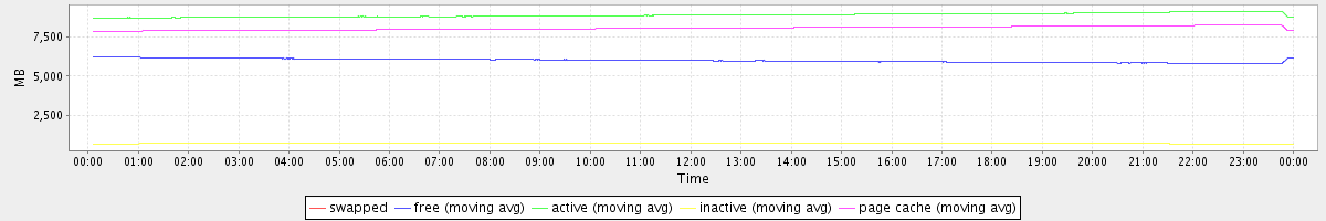 avg(swapped) = 0.00 avg(free) = 5997.04 avg(active) = 8911.83 avg(inactive) = 690.25 avg(page cache) = 8071.18