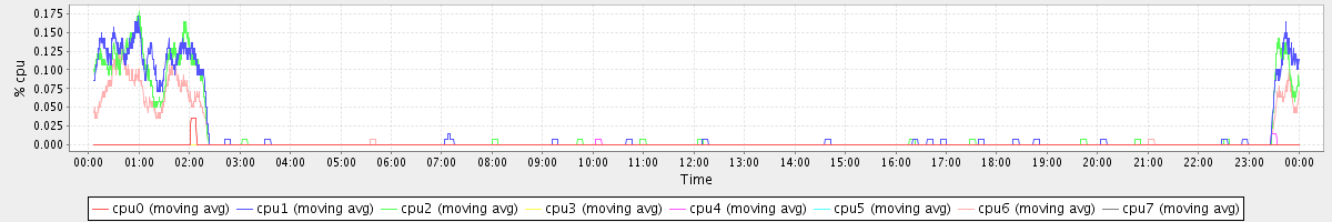 avg(cpu0) = 0.02 avg(cpu1) = 0.05 avg(cpu2) = 0.04 avg(cpu3) = 0.00 avg(cpu4) = 0.00 avg(cpu5) = 0.00 avg(cpu6) = 0.03 avg(cpu7) = 0.00