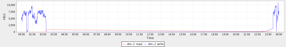 avg(dm-2 read) = 0.36 avg(dm-2 write) = 188.64