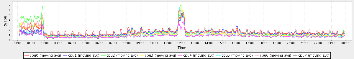 avg(cpu0) = 1.73 avg(cpu1) = 0.28 avg(cpu2) = 0.35 avg(cpu3) = 0.25 avg(cpu4) = 0.17 avg(cpu5) = 0.24 avg(cpu6) = 0.24 avg(cpu7) = 0.19