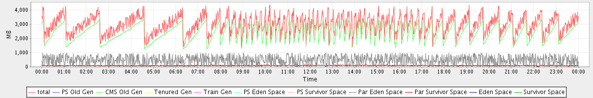 avg(total) = 2978.39 avg(PS Old Gen) = 0.00 avg(CMS Old Gen) = 2403.50 avg(Tenured Gen) = 0.00 avg(Train Gen) = 0.00 avg(PS Eden Space) = 0.00 avg(PS Survivor Space) = 0.00 avg(Par Eden Space) = 484.61 avg(Par Survivor Space) = 90.28 avg(Eden Space) = 0.00 avg(Survivor Space) = 0.00