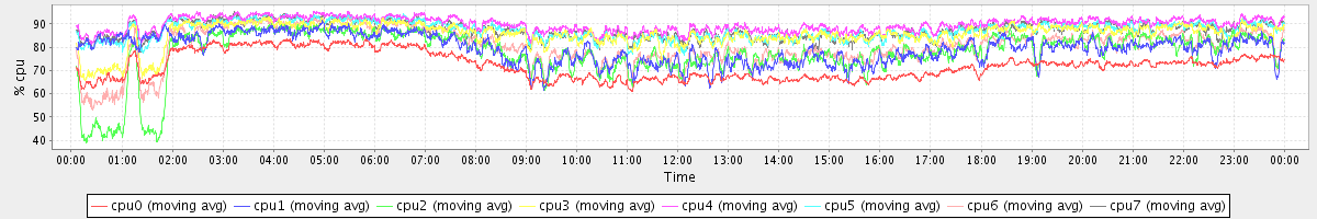 avg(cpu0) = 72.07 avg(cpu1) = 79.53 avg(cpu2) = 77.42 avg(cpu3) = 85.54 avg(cpu4) = 89.85 avg(cpu5) = 87.35 avg(cpu6) = 80.47 avg(cpu7) = 87.45