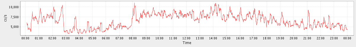 avg(user) = 13.84 avg(sys) = 1.34 avg(idle) = 79.28 avg(iowait) = 5.09 avg(nice) = 0.00 avg(irq) = 0.04 avg(softirq) = 0.41