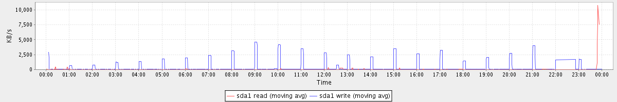 avg(sda1 read) = 17.44 avg(sda1 write) = 319.30