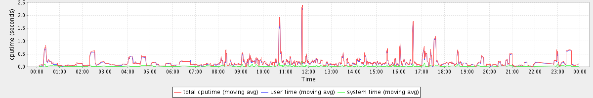 avg(total cputime) = 0.10 avg(user time) = 0.09 avg(system time) = 0.01