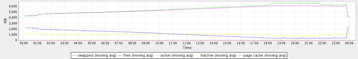 avg(swapped) = 0.20 avg(free) = 1071.17 avg(active) = 5568.53 avg(inactive) = 1051.52 avg(page cache) = 5419.81