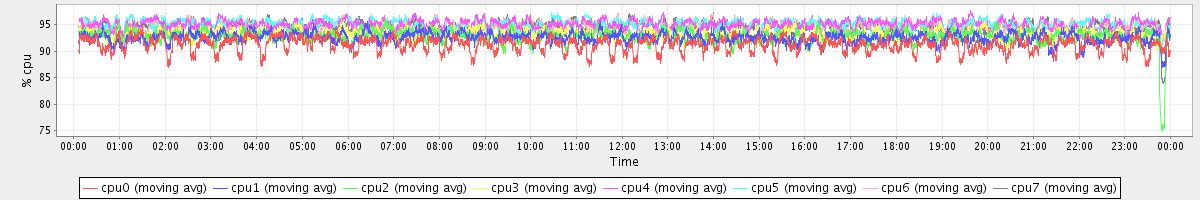 avg(cpu0) = 91.20 avg(cpu1) = 92.51 avg(cpu2) = 92.78 avg(cpu3) = 93.18 avg(cpu4) = 94.97 avg(cpu5) = 95.04 avg(cpu6) = 94.58 avg(cpu7) = 94.52