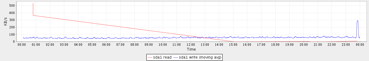 avg(sda1 read) = 0.06 avg(sda1 write) = 2.17