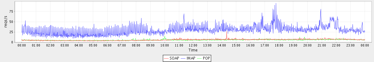 Host zm05.stanford.edu: Mailboxd: Request Rate by Client Protocol